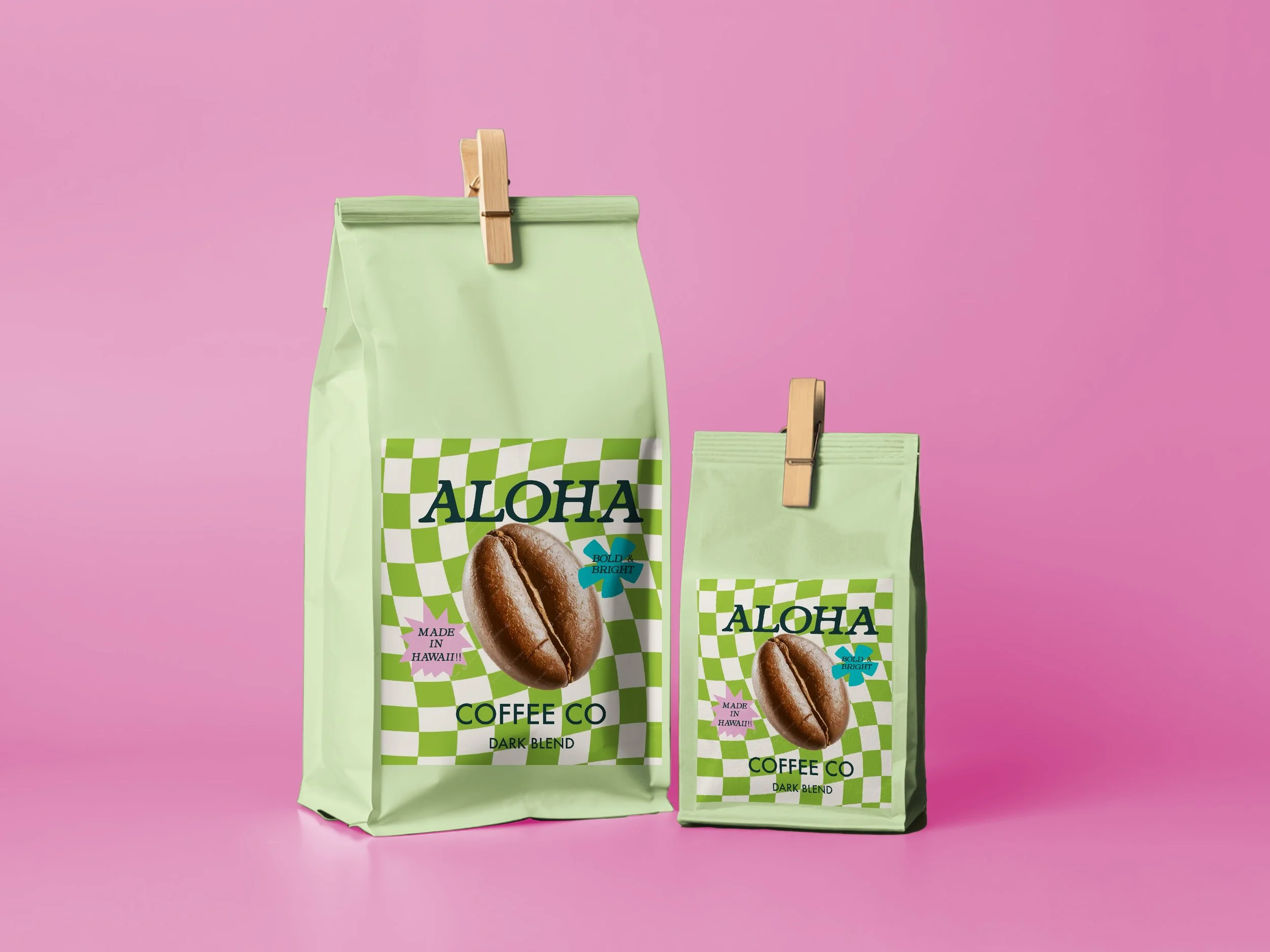 Aloha is a coffee company aimed at bringing a modern and relevant twist to classic Hawaiian coffee flavor. The brand’s goal is to stay relevant within the world of social media and “instagrammable” branding, while tying in their tropical influence. They want to become a brand known for their chic and fun packaging, making their coffee something people talk about to their friends.